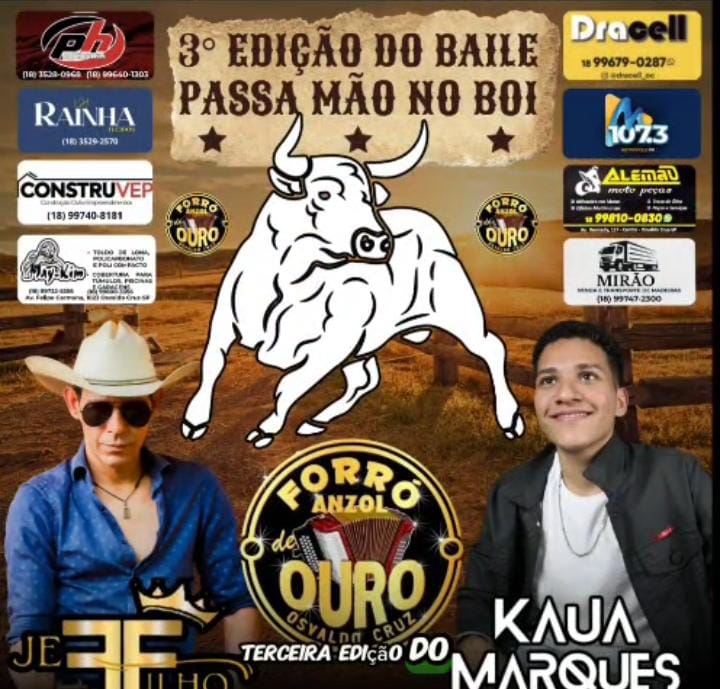 Acontece no próximo sábado, dia 11, a 3ª edição do tradicional Baile “Passa a Mão no Boi”, no Pesqueiro Anzol de Ouro, em Osvaldo Cruz. O evento promete muita animação, boa música e premiações especiais.