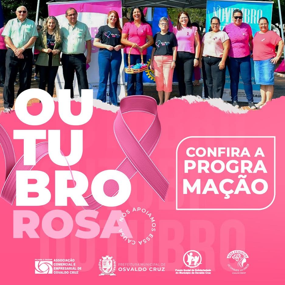 A ACEOC – Associação Comercial e Empresarial de Osvaldo Cruz, participa, juntamente com a Rede Feminina de Combate ao Câncer local e Prefeitura de Osvaldo Cruz, da Campanha Outubro Rosa e Novembro Azul 2022. O lançamento aconteceu no dia 3 de outubro, na Praça São José.