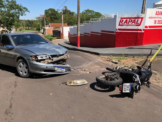 Um acidente de trânsito envolvendo um carro e uma moto foi registrado na manhã de hoje (21), por volta das 07h30 na esquina das ruas Fernando Costa com Califórnia.