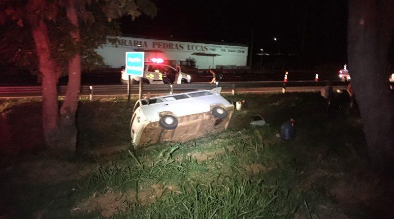 Com o impacto a perua atravessou todas as faixas de rolamento saindo da pista além do acostamento no sentido oposto ao que trafegava, vindo a cair em uma valeta para escoamento das águas pluviais.