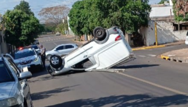 Acidente envolve dois veículos na vila Jamil de Lima: um deles capota na alameda Belo Horizonte em Adamantina