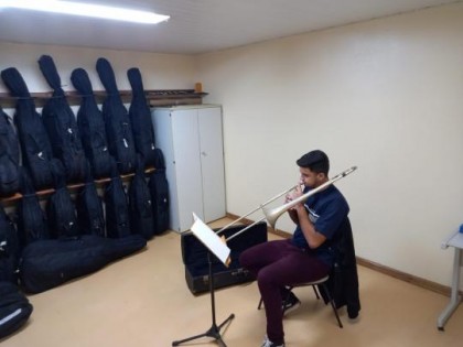Nicolas é aluno do projeto desde 2017 e toca trombone.
