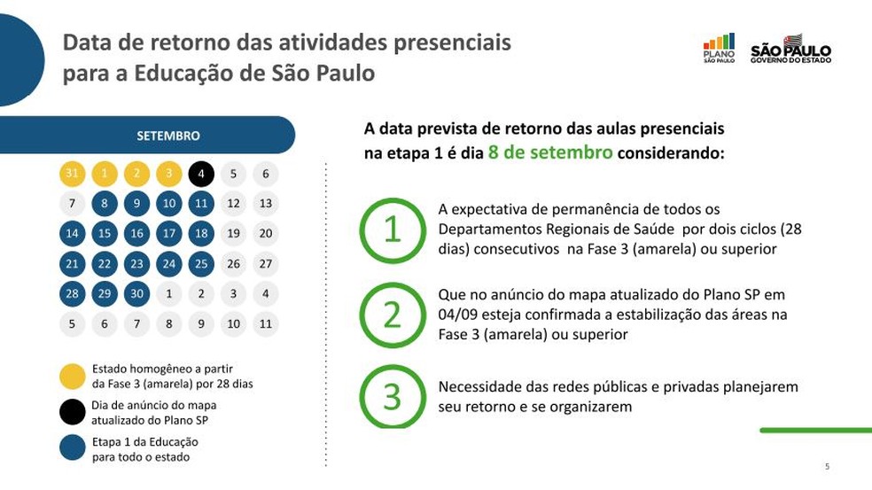 O governo de São Paulo anunciou, no início da tarde desta quarta-feira (24), a retomada das aulas presenciais a partir do dia 8 de setembro.
