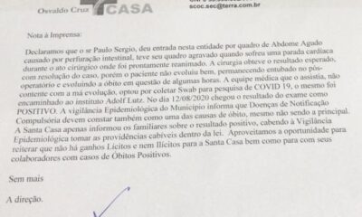 OSVALDO CRUZ – Após a polêmica gerada pela nota emitida pela Assessoria de Imprensa da Prefeitura de Osvaldo Cruz ontem (12) em que, baseado em dados...