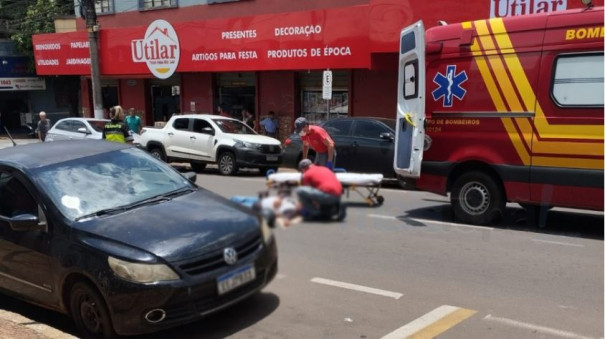 Carro provoca queda de motociclista e foge sem prestar socorro no centro de Tupã