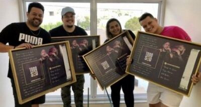 Tiago Marcelo (de Adamantina), Kel Bertin (de Lucélia), Leo Souzza (de Parapuã) e Diego de Souza (de Goiânia/GO), assinam a composição de “Todo Seu”, novo hit...