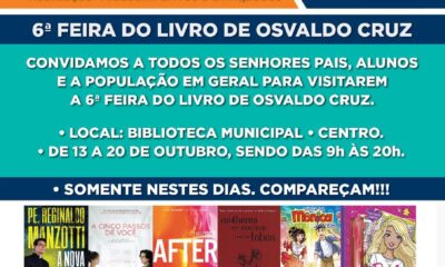 Segue até a próxima quarta-feira (20) a 6ª Edição da Feira do Livro de Osvaldo Cruz. A realização é da “Alacadin Livros e Brinquedos” e têm...