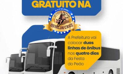 A Prefeitura de Osvaldo Cruz, por meio da Lei nº 3.749 de 2025, vai oferecer transporte público gratuito durante os quatro dias da Festa do Peão, que...
