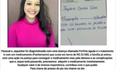 A jovem Jaqueline, de apenas 17 anos de idade, que tem familiares em Osvaldo Cruz e foi diagnosticada com Porfiria Aguda, doença rara que causa uma...