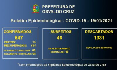 A Prefeitura de Osvaldo Cruz, através da Vigilância Epidemiológica, divulgou no final da tarde desta terça-feira (19) a 16ª morte causada pelo novo coronavírus (Covid-19) no...