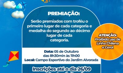Estão abertas as inscrições para o Festival de Pipas “Brincando com o Vento”, uma realização da secretaria municipal de Cultura, Esportes e Turismo, através do Conselho...