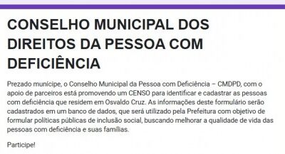 O objetivo é mapear as deficiências existentes para embasar a criação de políticas públicas voltadas a esse público. Para participar, basta acessar o QR Code disponível...