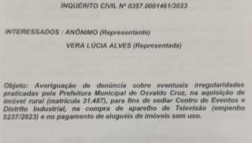A Prefeita Vera Morena foi à Câmara Municipal de Osvaldo Cruz ontem (4) para anunciar o arquivamento por parte do Ministério Público dois procedimentos de investigação...