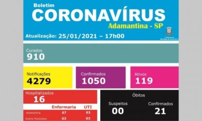 O boletim epidemiológico da Covid-19 em Adamantina, divulgado na tarde desta segunda-feira (25), mostra que cidade ultrapassou a casa dos mil casos e atingiu 1.050 registros...