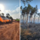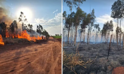 Um incêndio queimou 100 mil metros quadrados de área de plantação de eucalipto e pastagem na tarde deste sábado (4) em Martinópolis (SP). A área equivale...
