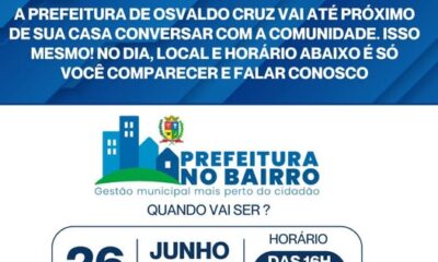 Nesta quinta-feira, dia 26 de junho, das 16h30 às 18h30, acontece a primeira edição do Prefeitura no seu Bairro, no Centro Comunitário Nelson Cavalini. A Prefeita...
