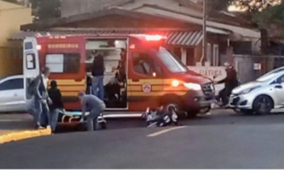 Na tarde de ontem, segunda-feira, a condutora de uma motocicleta trafegava pela Rua Caingangs, no sentido centro ao bairro, quando próximo a Praça do Jardim Santa...