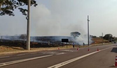 Um caminhão que transportava uma carga de feno pegou fogo e as chamas se espalharam e destruíram uma área de quase 17 hectares de pastagem, na...
