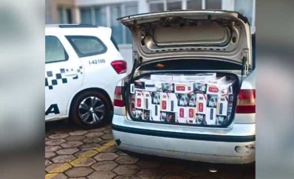 Durante a abordagem, foram encontrados 1.750 maços de cigarros de origem paraguaia no interior do veículo.