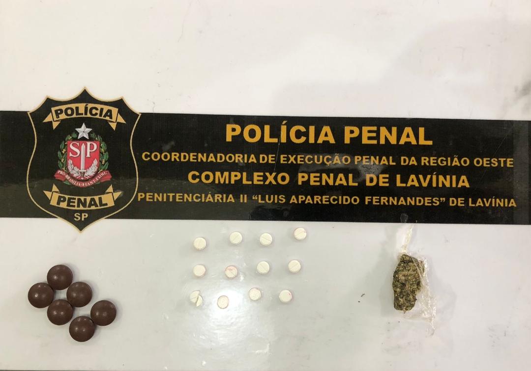 No domingo, na mesma unidade, outra visitante apresentou imagem suspeita no cós da blusa que usava. A mulher, esposa de um detento alojado no estabelecimento penal, ao ser questionada, retirou voluntariamente dois invólucros contendo uma porção de substância aparentando ser maconha além de 12 comprimidos brancos e 06 comprimidos marrons.