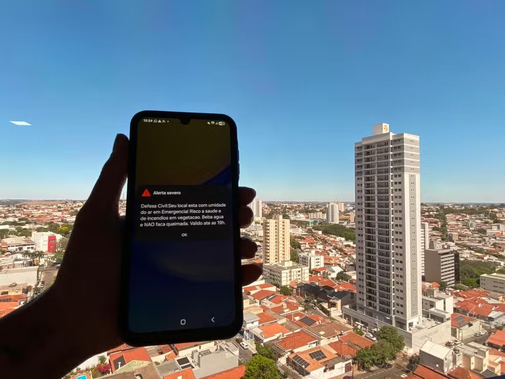 Celulares de moradores das regiões oeste e centro-oeste paulista apitaram no início da tarde desta quarta-feira (10) com alerta severo da Defesa Civil do Estado de SP, próximo das 13h20, que reforçou os cuidados necessários com a baixa umidade do ar e risco de queimadas pela segunda vez em três dias.