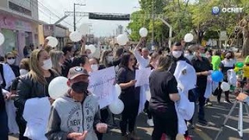 Profissionais da enfermagem protestaram em Osvaldo Cruz durante a caminhada cívica do 7 de Setembro, quarta-feira, no centro de Osvaldo Cruz.