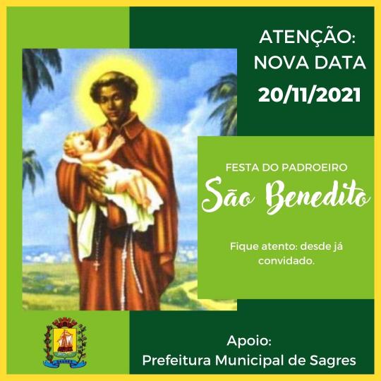 Devido ao decreto do Governo do Estado de SP, não liberando eventos sem controle de público, foi necessária uma nova data para a Festa do Padroeiro – São Benedito, para o dia 20 de Novembro