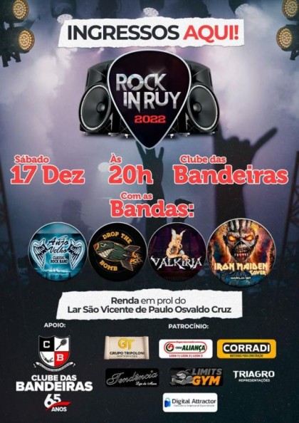 O Rock in Ruy 2022 vai acontecer no sábado, dia 17 de dezembro, no Clube das Bandeiras, a partir das 20 horas.