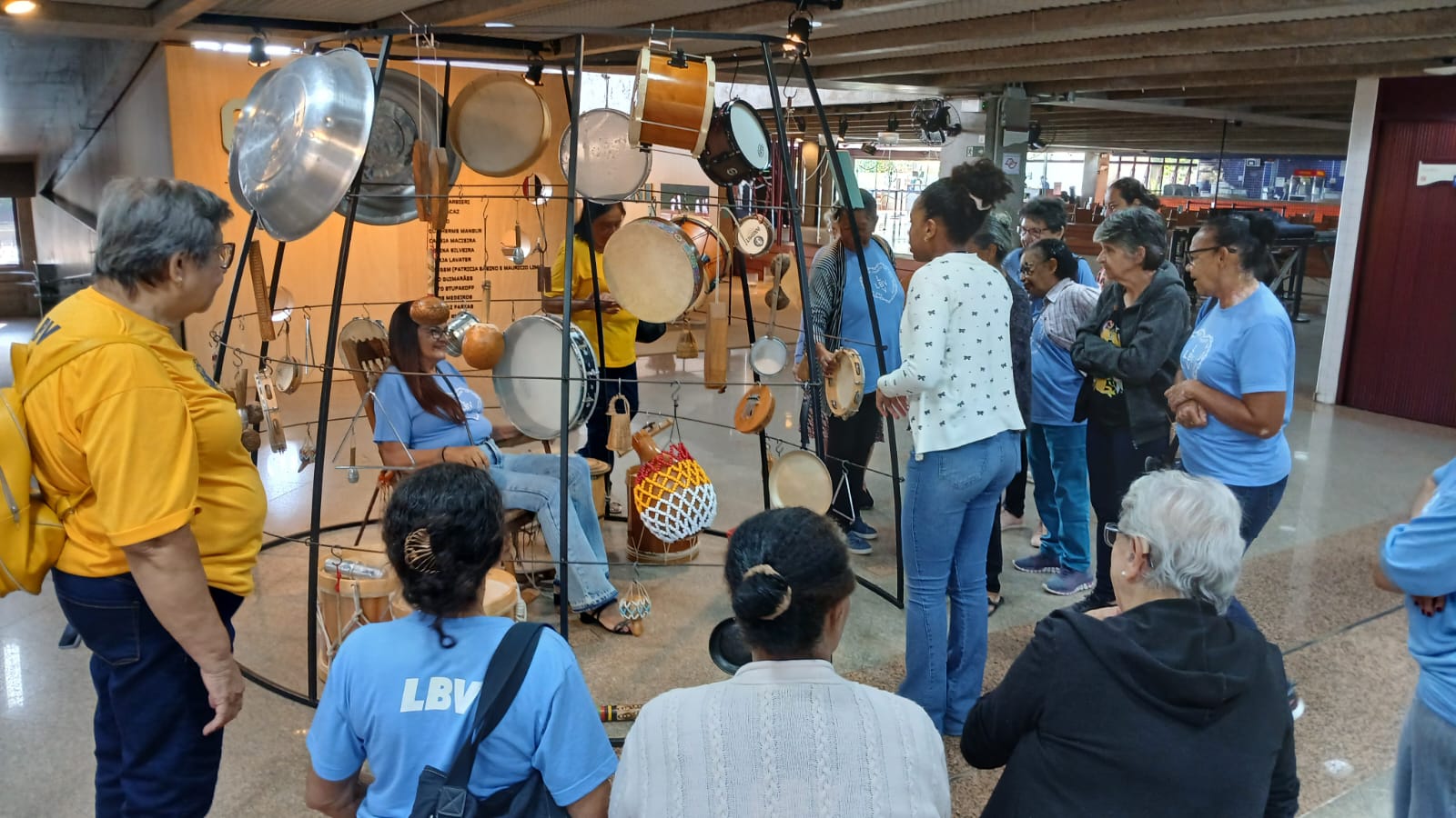 As monitoras da exposição ficaram encantadas com o engajamento das participantes, que fizeram diversas perguntas, compartilharam experiências vividas e até se divertiram tocando os instrumentos musicais disponíveis na exposição. A coordenadora do grupo, Edmarcia Regina Tinta, expressou seu agradecimento pelas participantes e aproveitou para convidá-las para as próximas exposições, reforçando a importância dessa troca cultural e intergeracional.