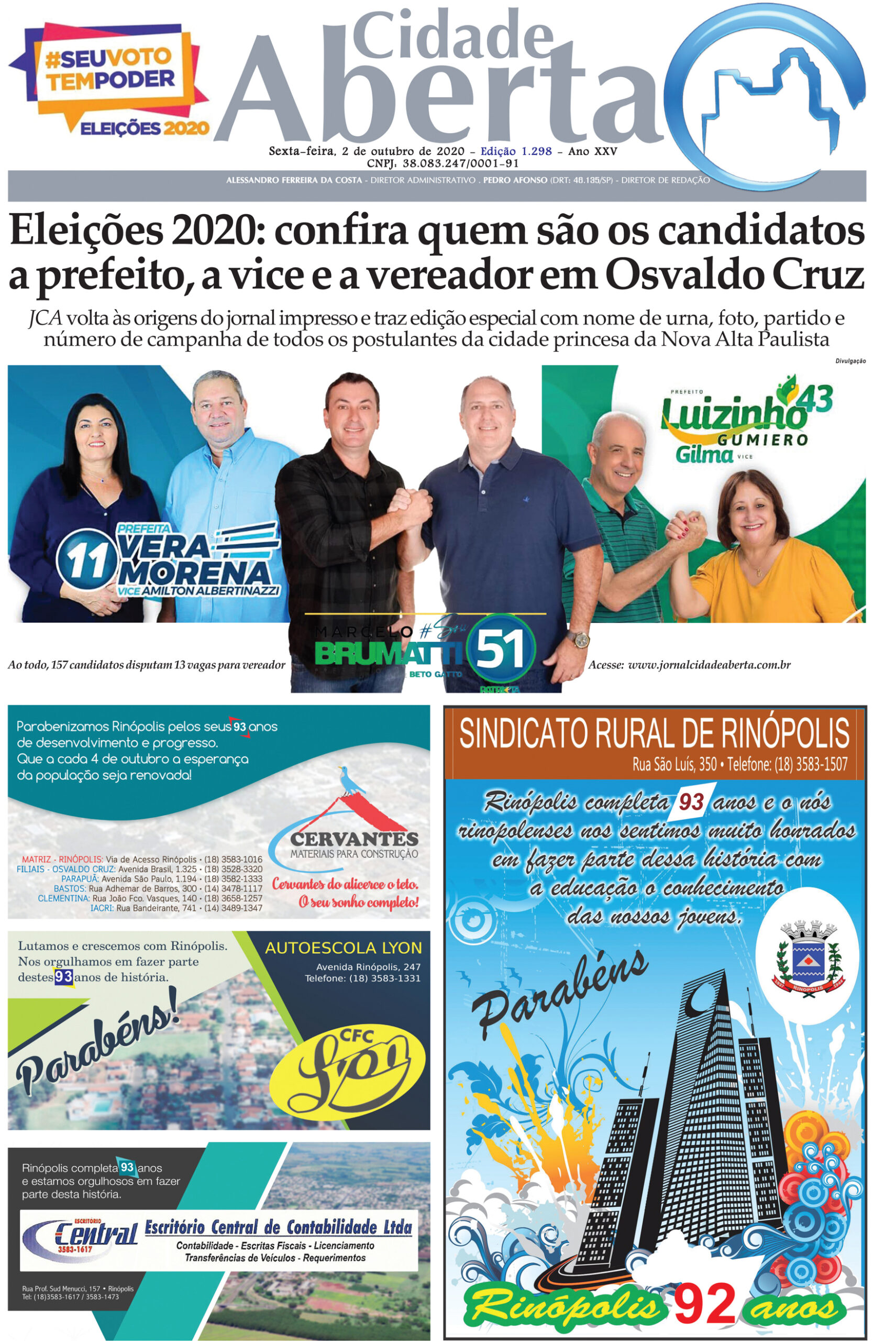 O Jornal Cidade Aberta (JCA) trouxe no último dia 2 uma edição especial com a foto de todos os candidatos das Eleições Municipais 2020 em Osvaldo Cruz.