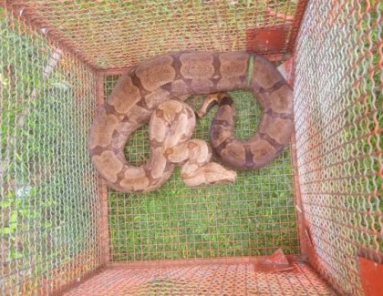 De acordo com informações repassadas pela polícia, o réptil, de mais de dois metros, foi encontrado e capturado próximo a um galinheiro, após “ter comido alguns frangos”.