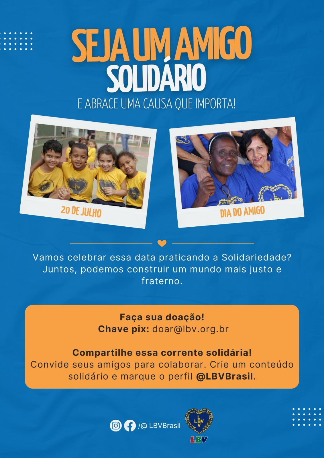 – Compartilhe essa iniciativa solidária! Marque seus amigos nas redes sociais e convide-os a colaborar e marque também o perfil @LBVBrasil no Instagram e no Facebook.