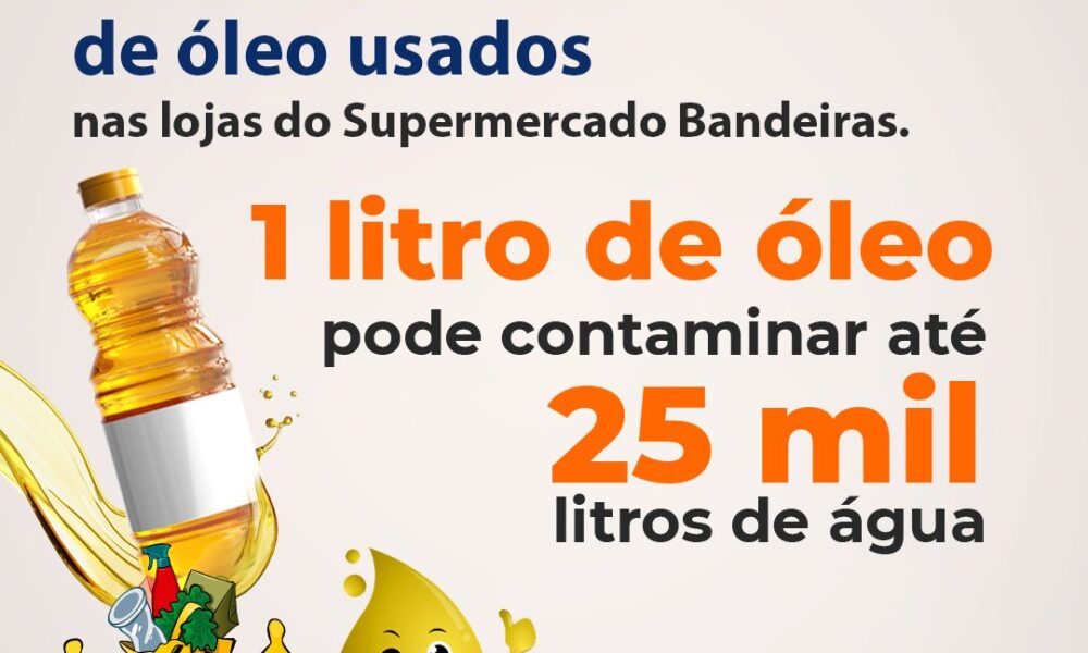 As duas lojas do Supermercado Bandeiras são pontos de coleta e troca de óleo usado e isso tem feito muita diferença no que diz respeito à preservação do meio ambiente. Por meio desta iniciativa e em parceria com a Granol, a cada 4 litros de óleo usado entregue no estabelecimento, o cliente ganha 1 litro de óleo novo.