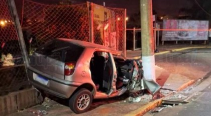 No final da madrugada deste sábado, 27, a condutora de um vevículo Palio trafegava pela Rua Aimorés, no sentido do centro ao bairro, quando após a curva próxima ao Varejão Gaspar perdeu controle da direção subindo na calçada e chocando-se violentamente contra um muro e contra um poste de iluminação pública.