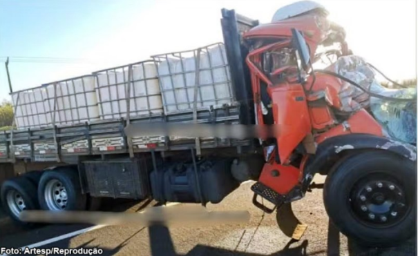 Ainda não se sabe as causa do acidente, mas o impacto da colisão foi tão forte que a cabine ficou completamente destruída.