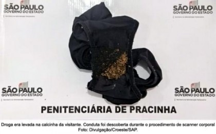 Neste domingo (15), na Penitenciária de Pracinha, uma visitante foi descoberta tentando ingressar na unidade prisional com uma porção de maconha na calcinha. O flagrante foi possível durante procedimento de revista corporal, por meio de aparelho de scanner, dentro dos procedimentos de segurança e de rotina, na unidade.