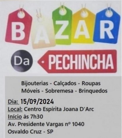 Neste domingo (15) tem Bazar da Pechincha do Centro Espírita Joana D’Arc