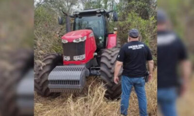 Um trator agrícola avaliado em cerca de R$ 800 mil foi recuperado pela Polícia Civil, nesta sexta-feira (10), após ser encontrado escondido em uma área de...