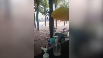 O Thermas dos Laranjais foi tomado pela água da chuva. Em uma das imagens, é possível ver a enxurrada avançando sobre cadeiras e mesas que são utilizadas pelos visitantes do local.