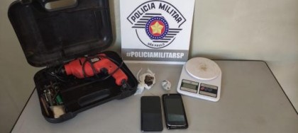A Polícia Militar de Osvaldo Cruz prendeu um traficante pela Avenida Roosevelt com maconha, uma balança de precisão, uma furadeira, dois celulares e dinheiro.