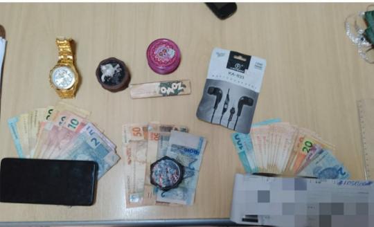 Feitas buscas nos suspeitos e no carro, a Polícia encontrou R$ 457 com o primeiro homem, R$ 1.160 com o segundo e dentro da bolsa da adolescente mais R$ 154,00, além de um cigarro e uma porção de maconha.