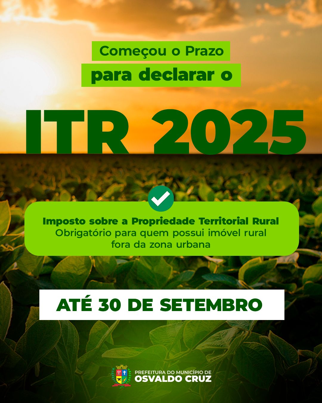 Termina no dia 30 de setembro, o prazo para a declaração do Imposto Territorial Rural, o ITR.
