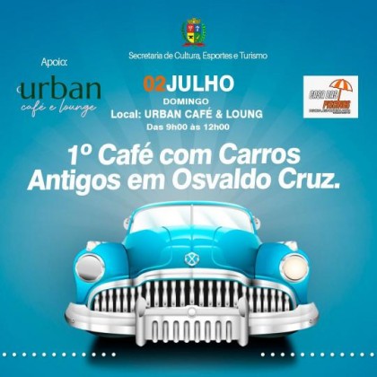 Com o apoio da Prefeitura de Osvaldo Cruz, através da Secretaria de Cultura, Esportes e Turismo, em parceria com as empresas Casa das Piscinas e Urban Café, será realizado neste domingo, dia 2, o Primeiro Café Com Carro Antigo.