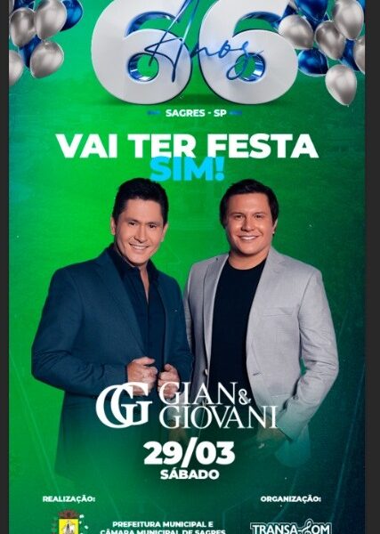 Já no sábado, dia 29, grande show com a dupla Gian e Giovani, seguida por mais uma apresentação do DJ Ricardo Costa.