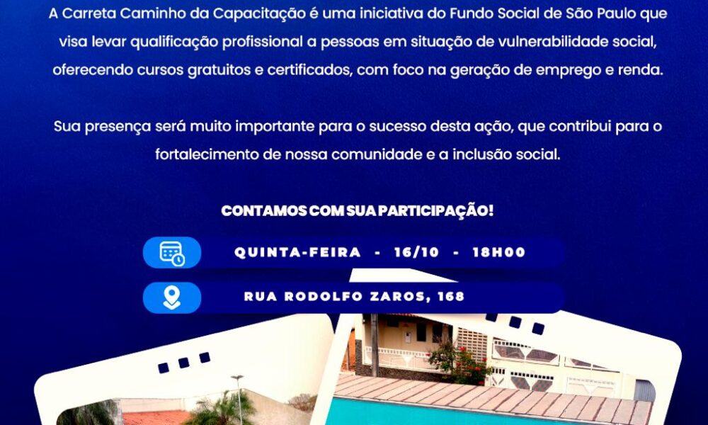 As atividades serão realizadas nas carretas do Fundo Social, instaladas em cada cidade, que oferecem cursos gratuitos de qualificação profissional.