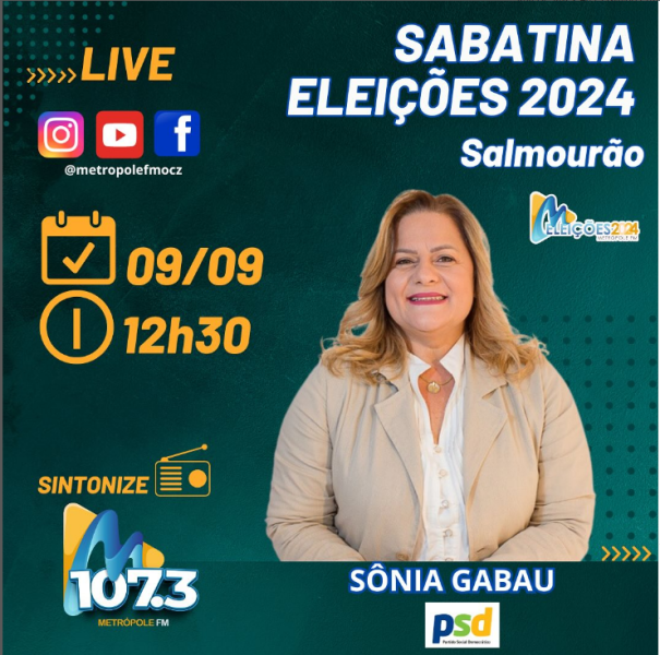 A Rádio Metrópole FM e Portal Metrópole de Notícias realizam nesta semana sabatinas com os candidatos a prefeito de Salmourão. A ordem de participação nas entrevistas foi definida através de sorteio.