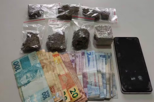 Na pochete, foram encontrados mais quatro porções da mesma droga e um pedaço de maconha in natura, além de R$ 511,00 em dinheiro.