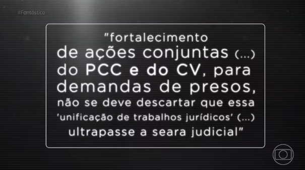 O Fantástico teve acesso a um relatório do Serviço de Inteligência do Ministério da Justiça que afirma: