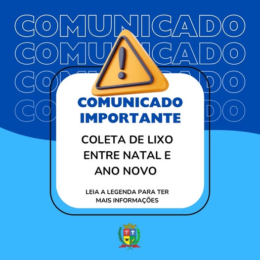 A Prefeitura de Osvaldo Cruz informa que a coleta de lixo realizada no município nas semanas do Natal e Ano Novo terá apenas lixo doméstico (orgânico e recicláveis) e sacos de folhas (massa verde).