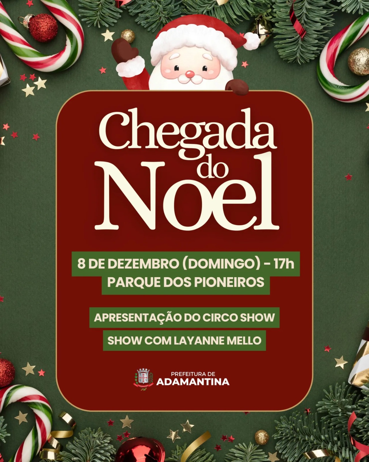 Neste domingo (8), acontece a tão aguardada chegada do Papai Noel em Adamantina. A programação tem início a partir das 16h no Parque dos Pioneiros.